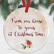 Decorate your tree with this personalised ceramic Christmas ornament featuring a Rough Collie standing in front of a beautiful festive fireplace.