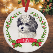 Brighten up your tree with this custom ceramic Christmas ornament featuring an irresistibly cute Shih Poo surrounded by a festive holly wreath. Add their name to make it extra special! 🎄😍