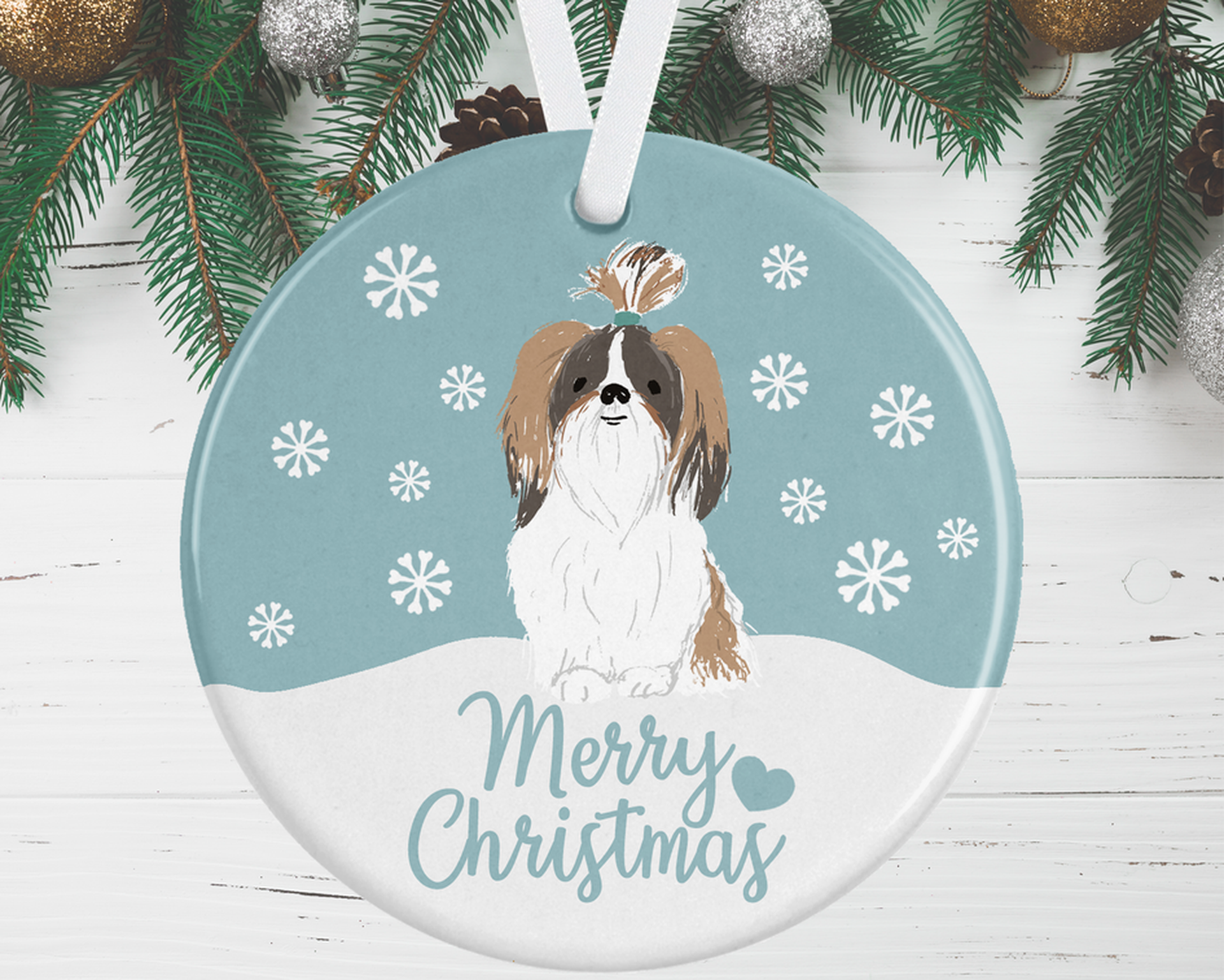 Finish off your Christmas tree with this gorgeous Shih Tzu Christmas Ornament, available in 4 background colour options to complement your colour scheme.