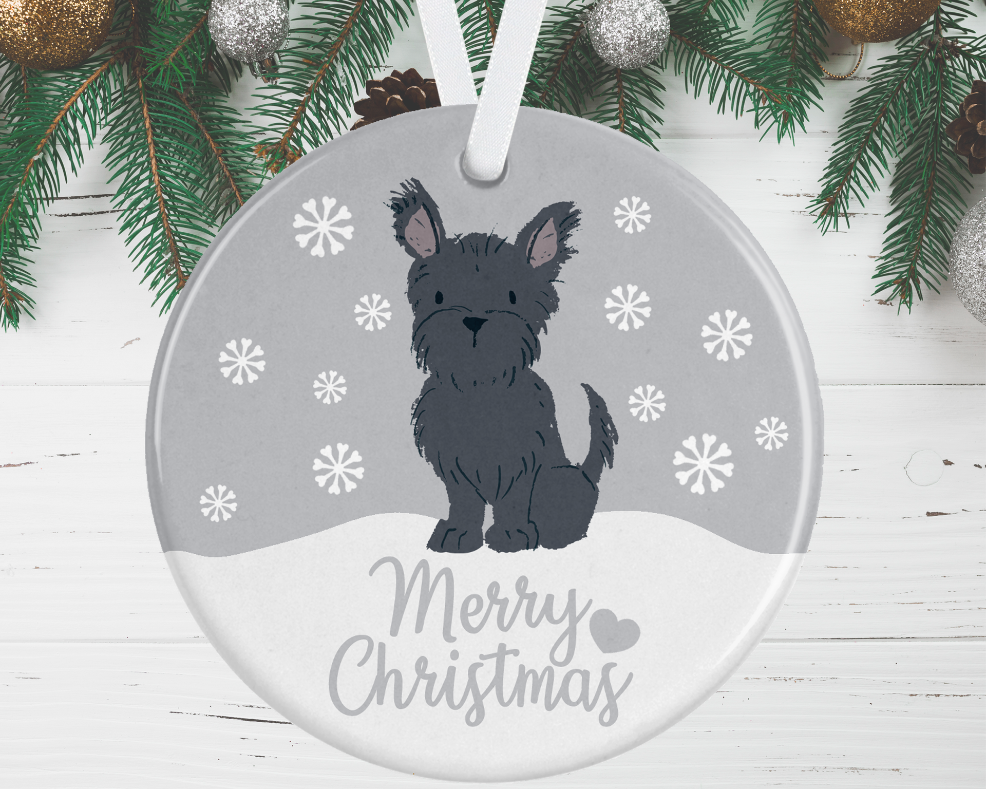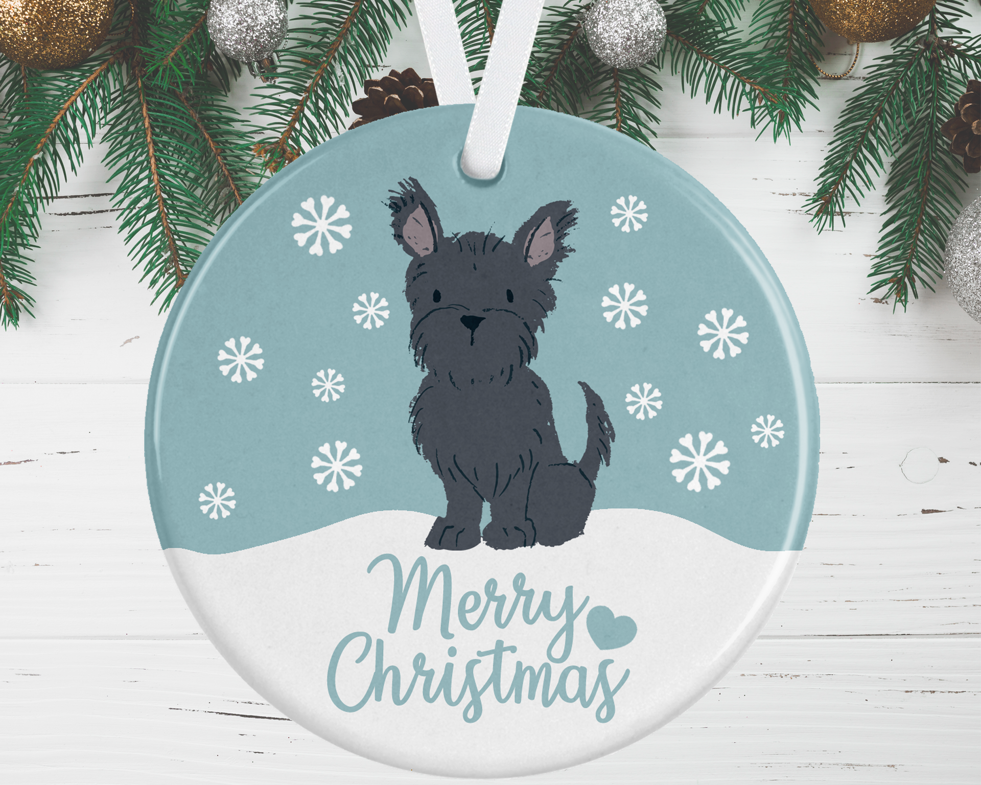 Finish off your Christmas tree with this gorgeous small black Terrier Christmas Ornament, available in 4 background colour options to complement your colour scheme.