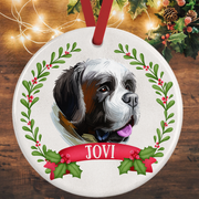Brighten up your tree with this custom ceramic Christmas ornament featuring an irresistibly cute Saint Bernard surrounded by a festive holly wreath. Add their name to make it extra special! 🎄😍