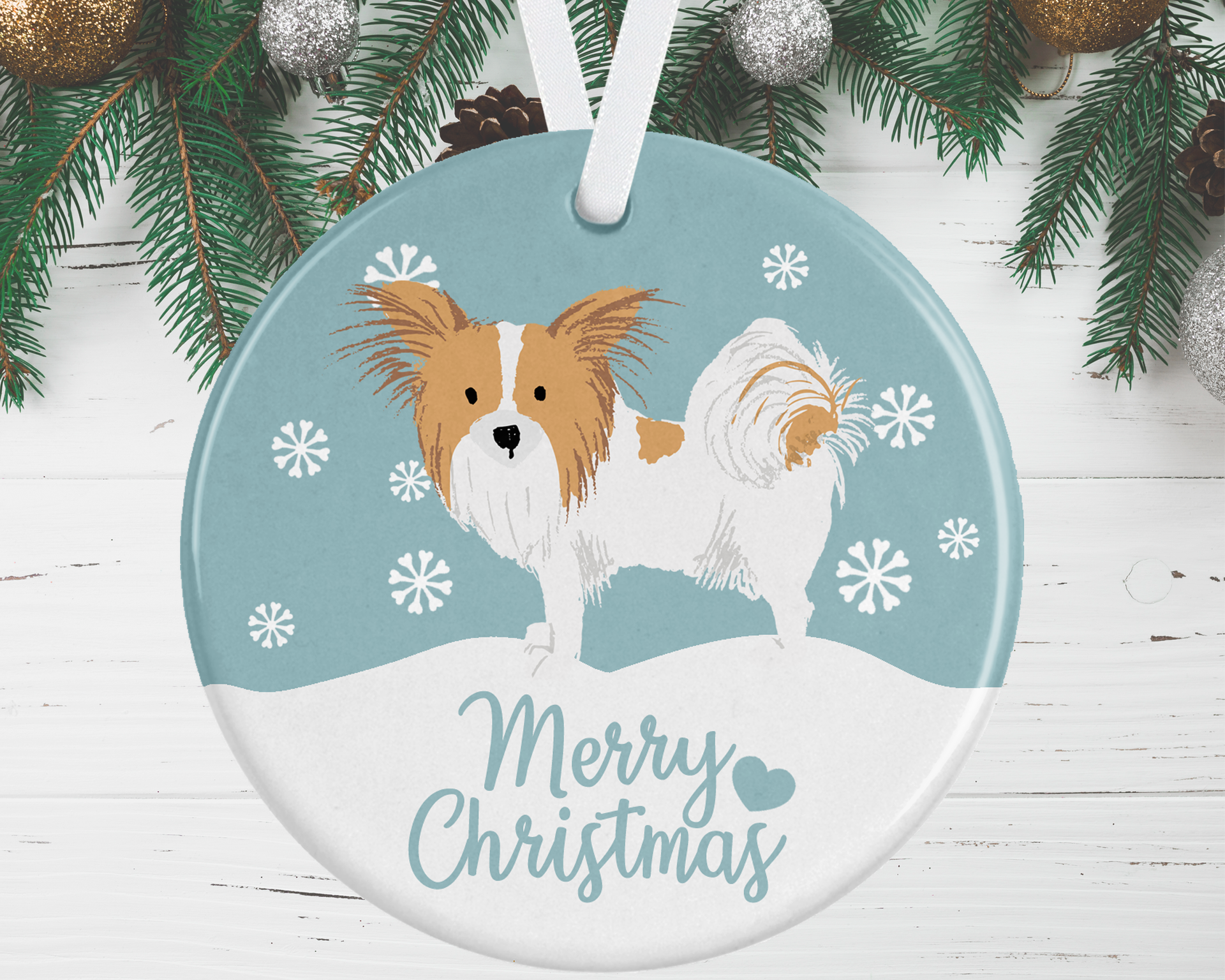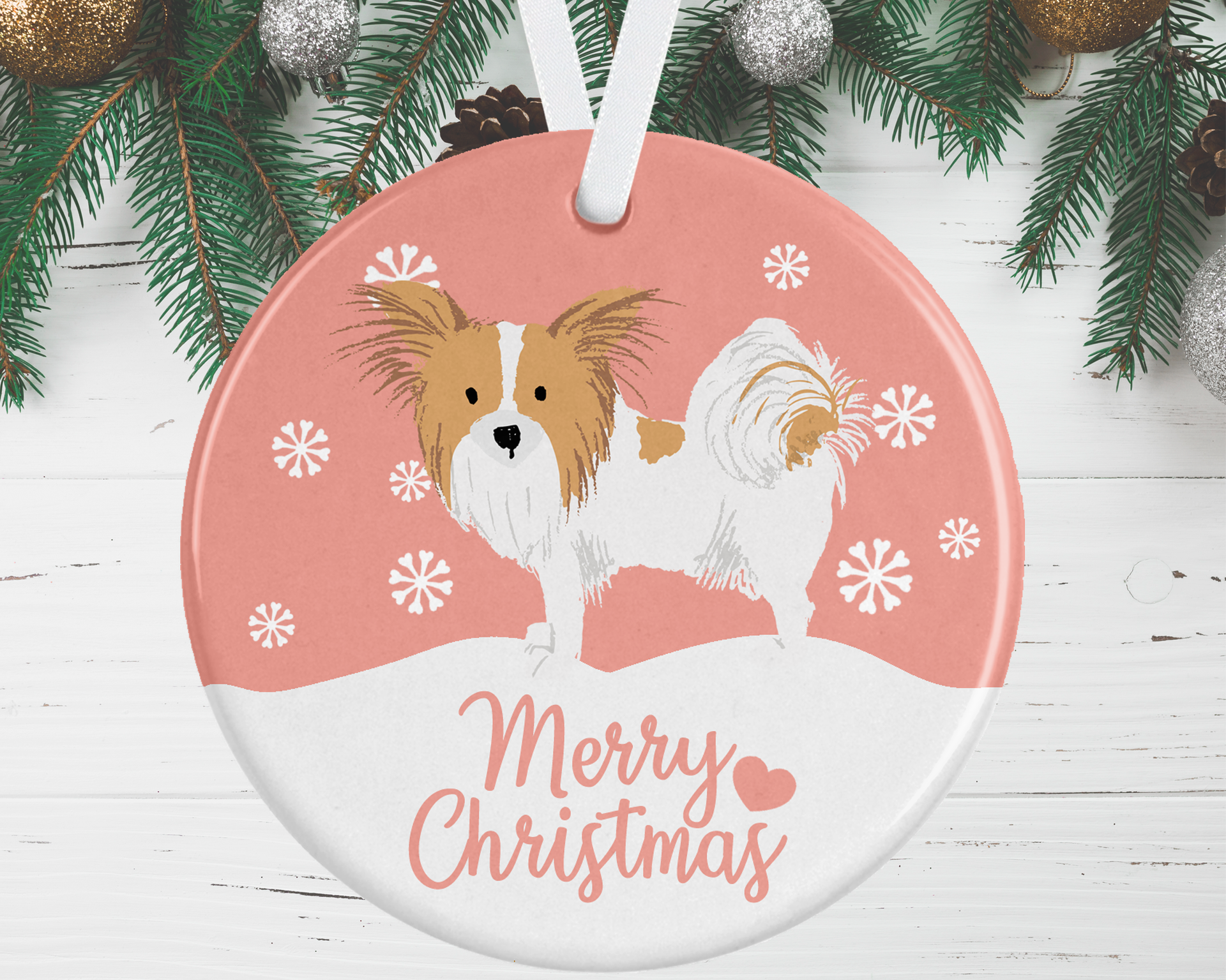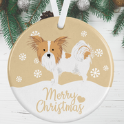 Finish off your Christmas tree with this gorgeous tan and white Papillon Christmas Ornament, available in 4 background colour options to complement your colour scheme.