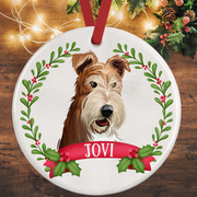 Brighten up your tree with this custom ceramic Christmas ornament featuring an irresistibly cute Wire Fox Terrier surrounded by a festive holly wreath. Add their name to make it extra special! 🎄😍
