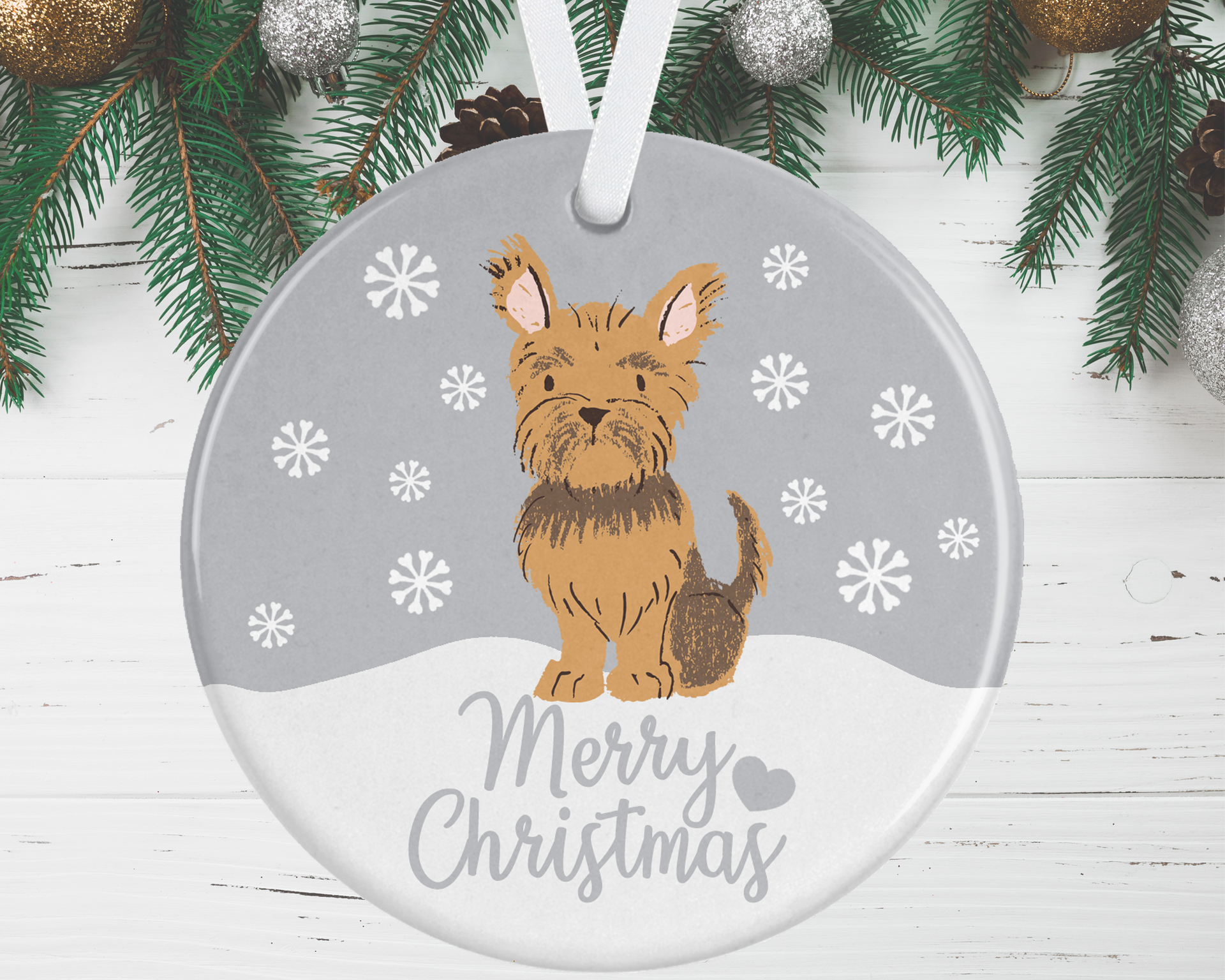 Finish off your Christmas tree with this gorgeous Yorkie Christmas Ornament, available in 4 background colour options to complement your colour scheme.