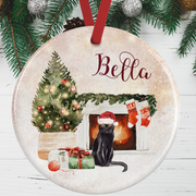 Decorate your tree with this personalised ceramic Christmas ornament featuring a Black Bombay Cat sitting in front of a beautiful festive fireplace.