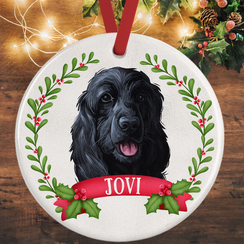 Brighten up your tree with this custom ceramic Christmas ornament featuring an irresistibly cute black Cocker Spaniel surrounded by a festive holly wreath. Add their name to make it extra special! 🎄😍